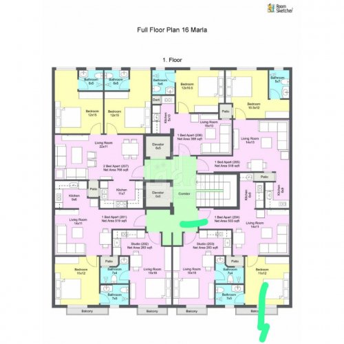 Located at Plot Nos. 205-206, this front-side studio apartment with balcony offers stunning views and a premium living experience. Just steps away from the Grand Mosque, Commercial Market, and Banera Country Club.