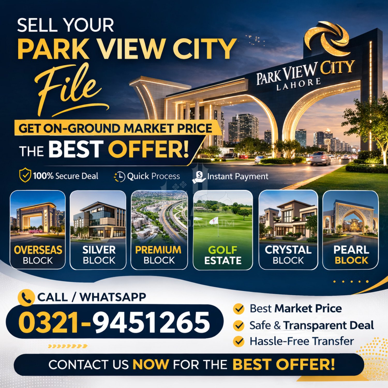 If you want to SELL your Park View City File and get the Best On-Ground Market Price, contact us today.