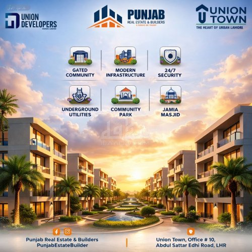 Union Town offers a peaceful environment, making it great for families and individuals alike. The plot is situated close to essential amenities such as schools, markets, and parks, providing convenience at your doorstep. The area is well-planned and has good road connectivity, ensuring easy access to other parts of Lahore.